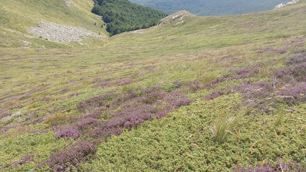 Ma in agosto inoltrato non si può che rimanere storditi dalle distese viola di erica che un po’ ovunque colorano il paesaggio ed è semplicemente bellissimo. Mi viene da pensare a quante volte, a casa, abbiamo tentato di colorare ‘il Tondo’ (una sfortunata aiuola senza identità nel nostro giardino) con piante di erica: nessuna è sopravvissuta oltre pochi mesi. Invece su per queste ripide pendici, sotto quel vento che impedisce a ogni arbusto di sollevarsi più di poche decine di centimetri da terra, pare una regina. E lo è veramente.