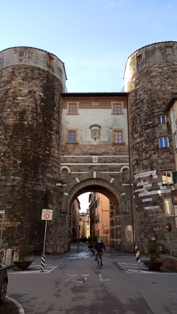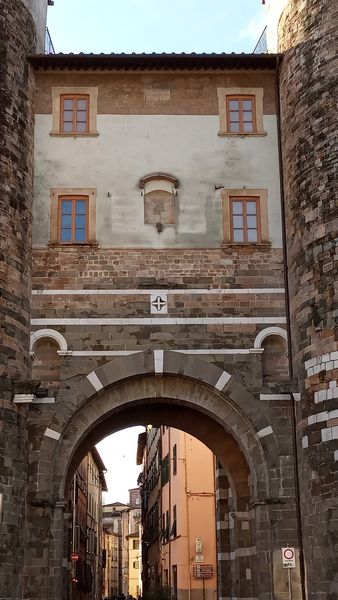 Della cerchia muraria medievale della città di Lucca sopravvivono diversi resti archeologici, un lungo tratto inglobato nell’ultima cinta e soprattutto due monumentali porte, la cosiddetta Porta dei Borghi e la Porta dei Santi Gervasio e Protasio. Purtroppo, tranne in un caso fra quelli citati, non si era conservato il coronamento merlato, ma un discutibilissimo restauro ha cancellato anche questa testimonianza.