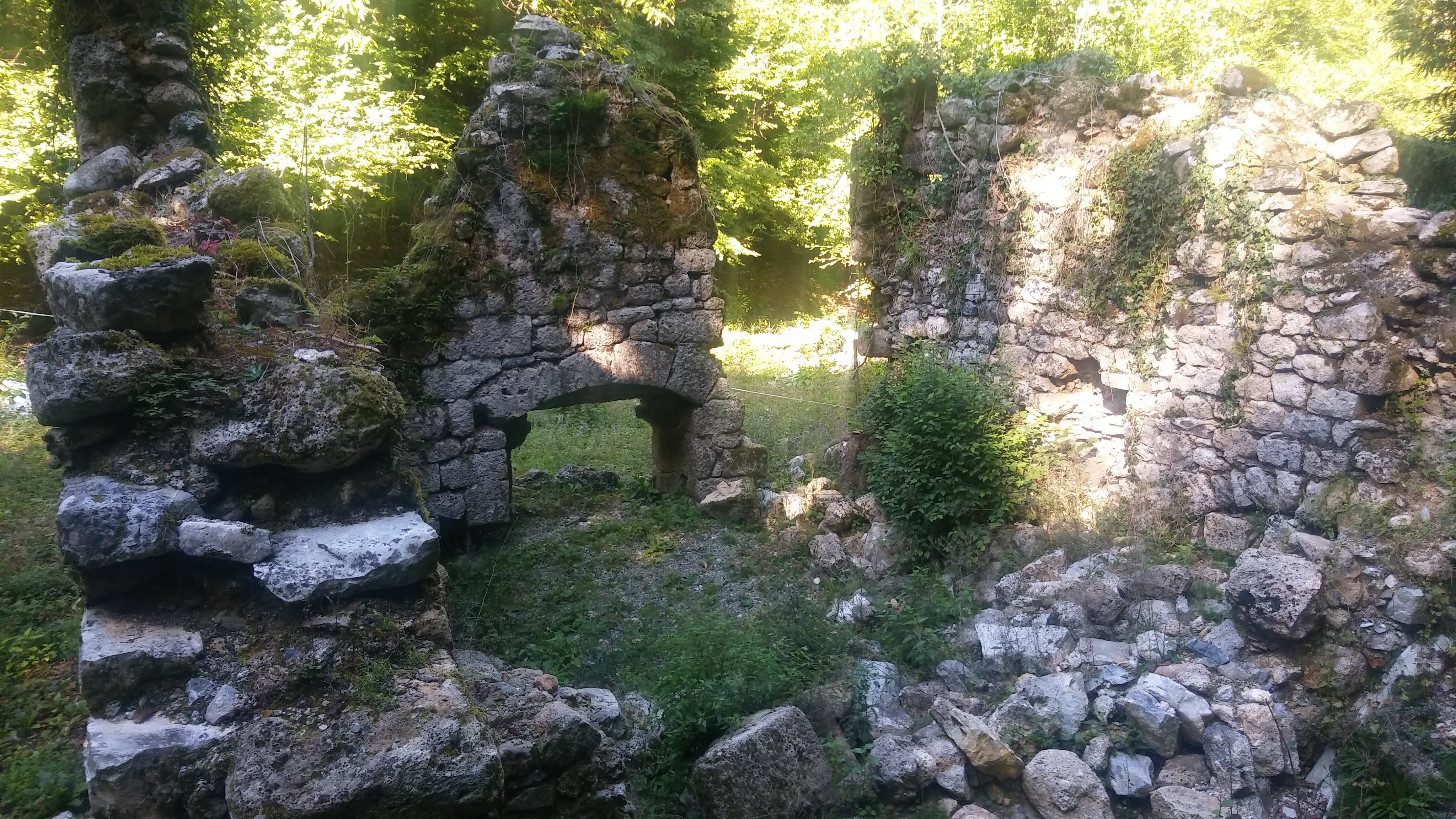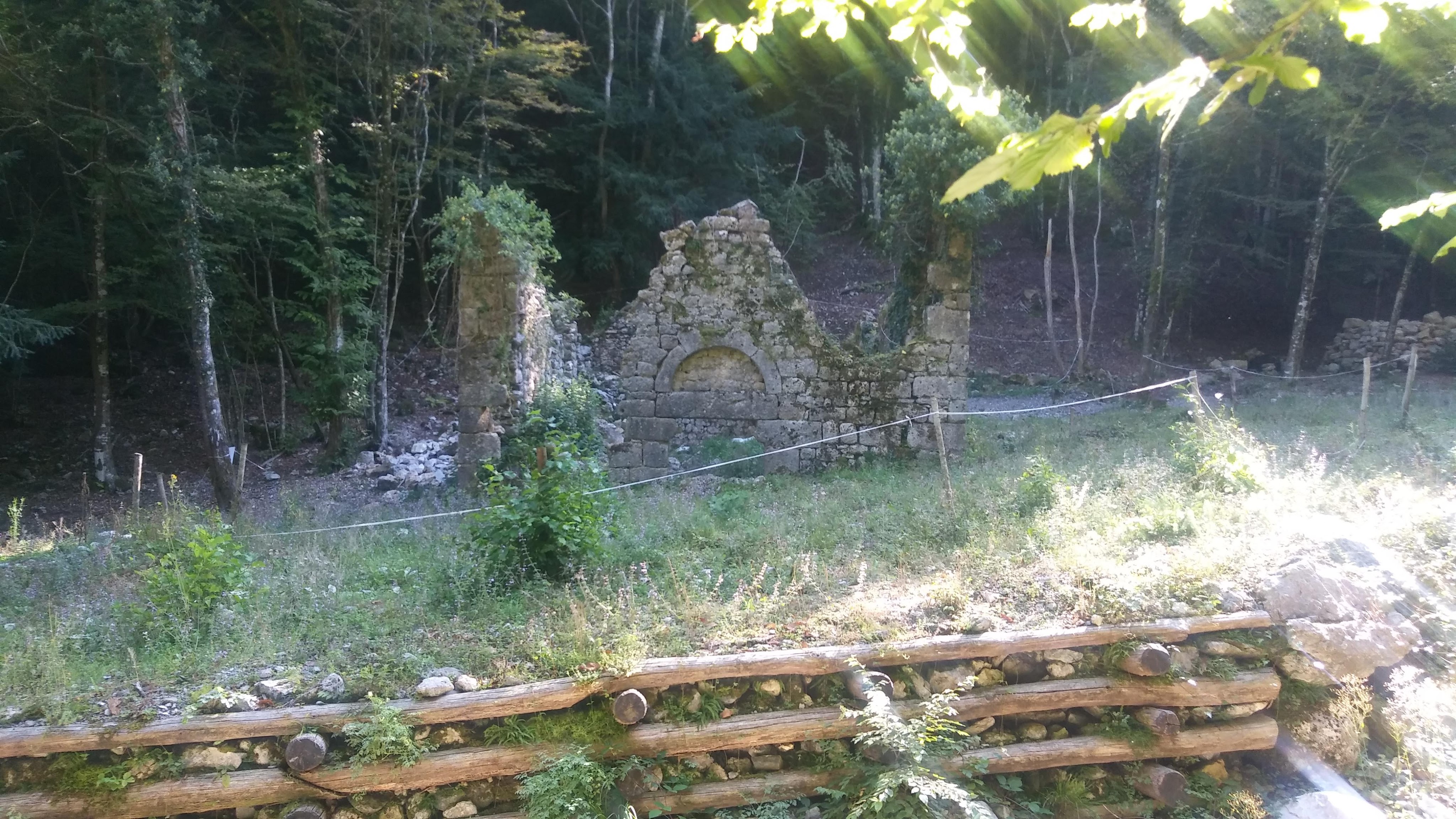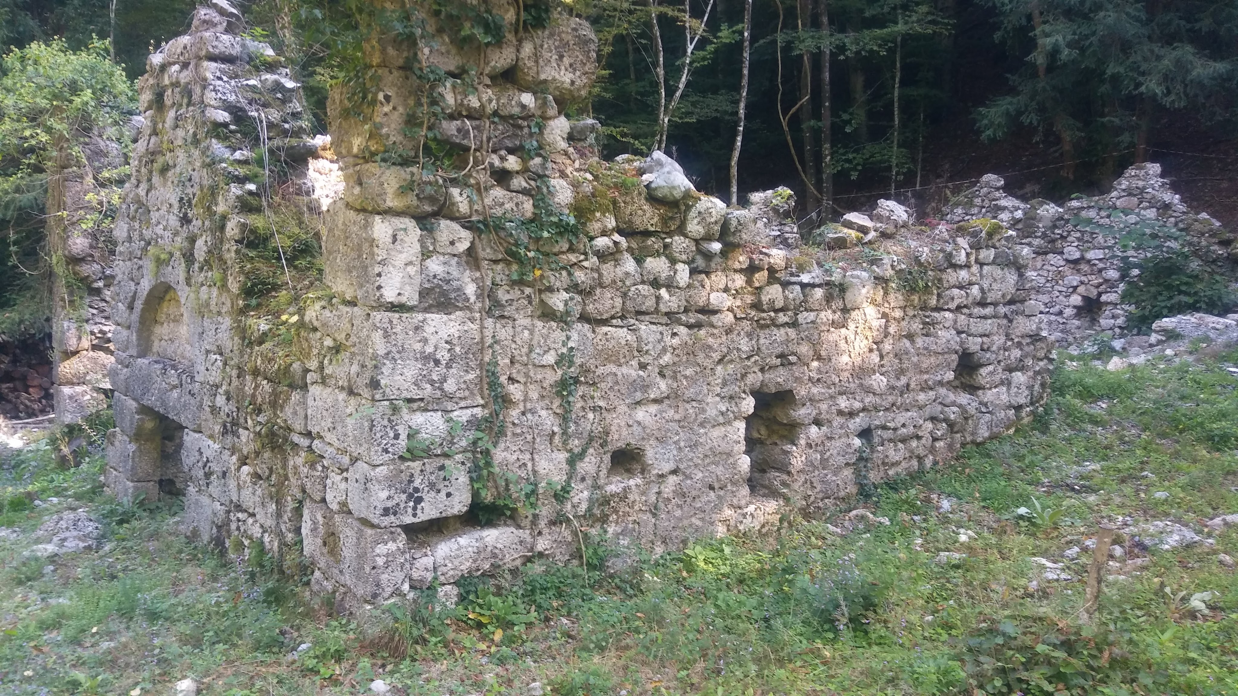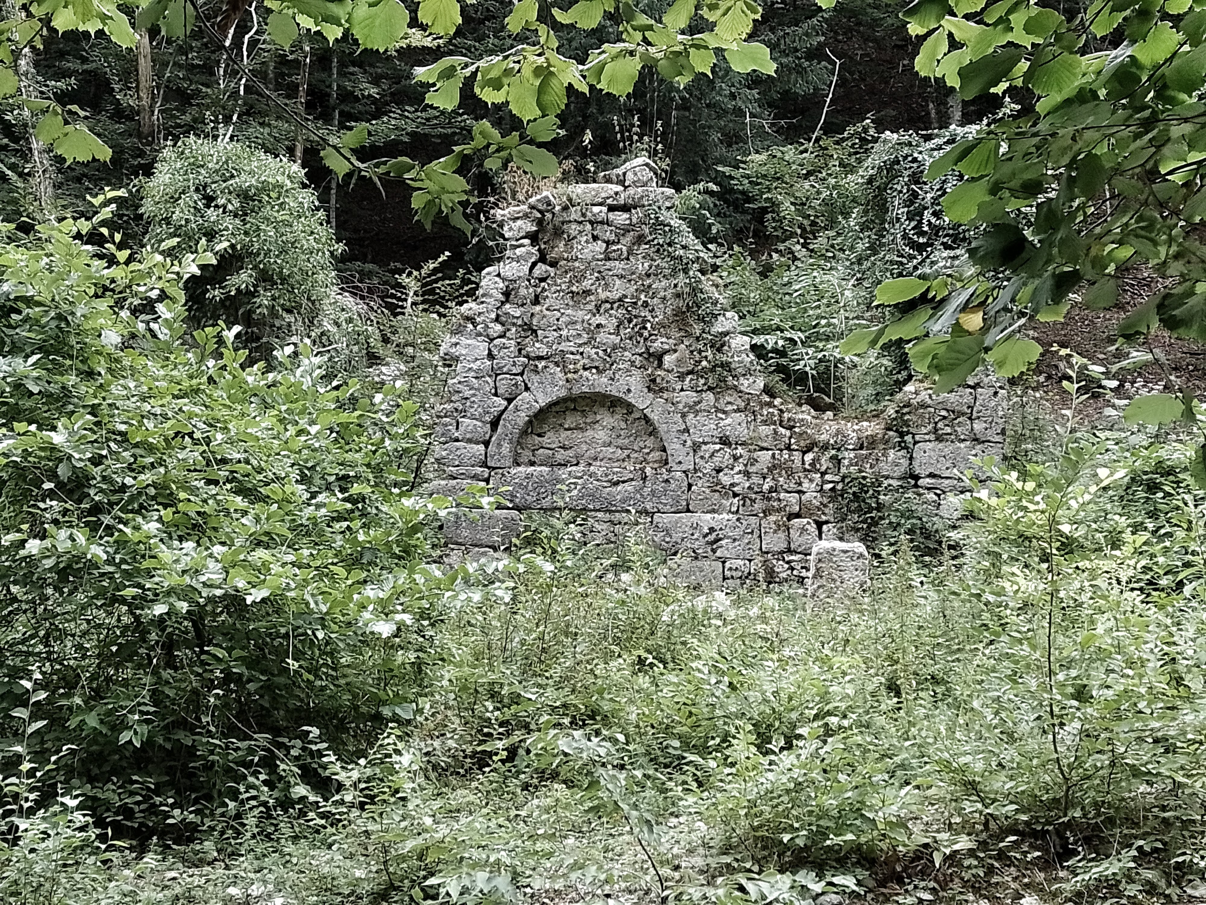 Ruderi del mulino ad acqua. Si noti la macina ai piedi dell’albero a sinistra dell’edificio