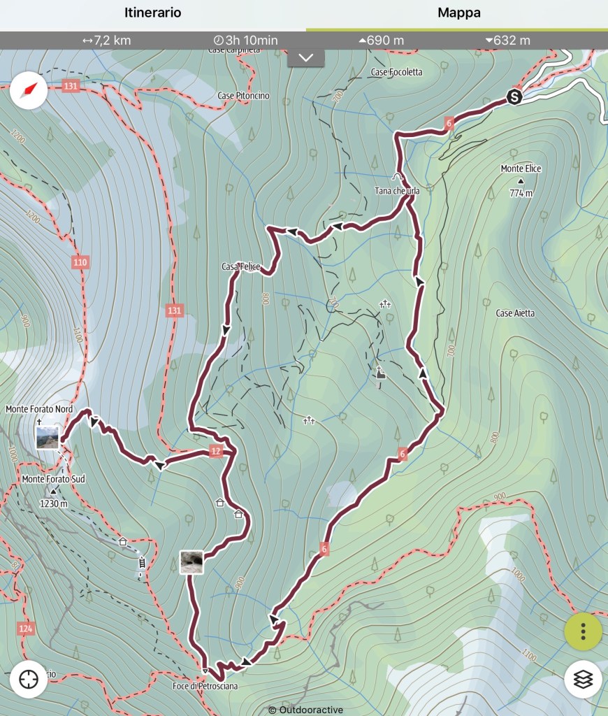 Per comodità ho diviso il percorso in tre tappe: dal parcheggio al Monte Forato; dal Monte Forato alla Foce di Petrosciana; dalla Foce di Petrosciana al parcheggio. Vediamoli.
