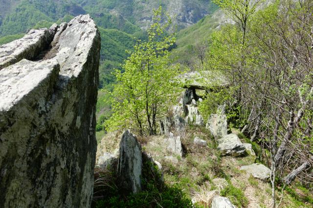Sull’altipiano delle Pizzorne, pochi chilometri a nord di Lucca fu costruito un dolmen megalitico, purtroppo oggi collassato su un fianco e rotto in più parti, costruito in posizione dominante al centro di un recinto a terrapieno al culmine di un crinale naturale ma, a mio giudizio, rimodellato sull’asse Nord-Sud, o comunque sfruttato per questa fortunata coincidenza.