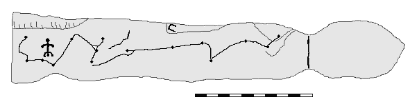 Per questo trovo particolarmente significativo che sulla stele sommitale del Monte Cotrozzi oltre alle stelle vi sia rappresentata anche una figura umana. L’intera composizione va chiaramente letta in modo organico e in relazione logica: l’uomo e le stelle. Non è chiaro se la stele, adesso in posa orizzontale, in origine fosse conficcata nel terreno, probabilmente no, visto che le figurazioni iniziano dalla base e sarebbero finite inevitabilmente interrate; dobbiamo quindi immaginarla come l’ago di una bussola che punta a 340°.