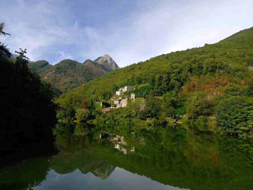 Dopo l’ovvia visita a Isola Santa, il percorso inizia con l’attraversamento pedonale della diga. Lo sbarramento è raggiungibile tornando sulla provinciale oppure scendendo dalla piazzetta davanti alla chiesa per poi seguire un suggestivo sentiero a pelo d’acqua che segue il profilo del lago fino allo sbarramento. Dalla cresta della muraglia, impagabile il riflesso sulla superficie ferma del lago del borgo di Isola Santa nella sua cornice delle montagne. Dall’altra parte, superate alcune strutture connesse al funzionamento della diga, si imbocca il sentiero CAI 9 che si inerpica con una ripida salita serpeggiante tra faggi e castagni, e solo una volta raggiunta la quota di circa 800 m allenta un po’ il morso. Nella giusta stagione non è difficile imbattersi in grossi porcini che anche in prossimità del sentiero si mostrano fieramente tra le foglie secche.