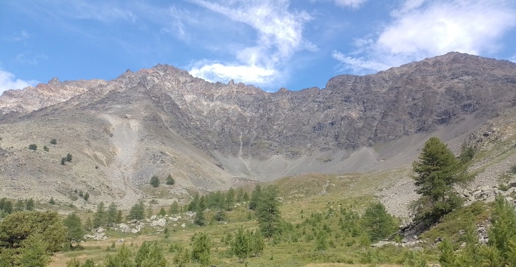 Arriviamo al Casotto, niente di particolare, ma dall’altra parte della valle torreggiano il Grande Rousse Nord (3607 mt) e Punta Rabuigne (3261 mt). Dietro di noi si intravede la base del massiccio tra la Tête d’Entrelor a destra (2580 mt) e la Tête de Sort (2634 mt), ma siamo troppo sotto per apprezzarlo. Bisogna spostarsi.