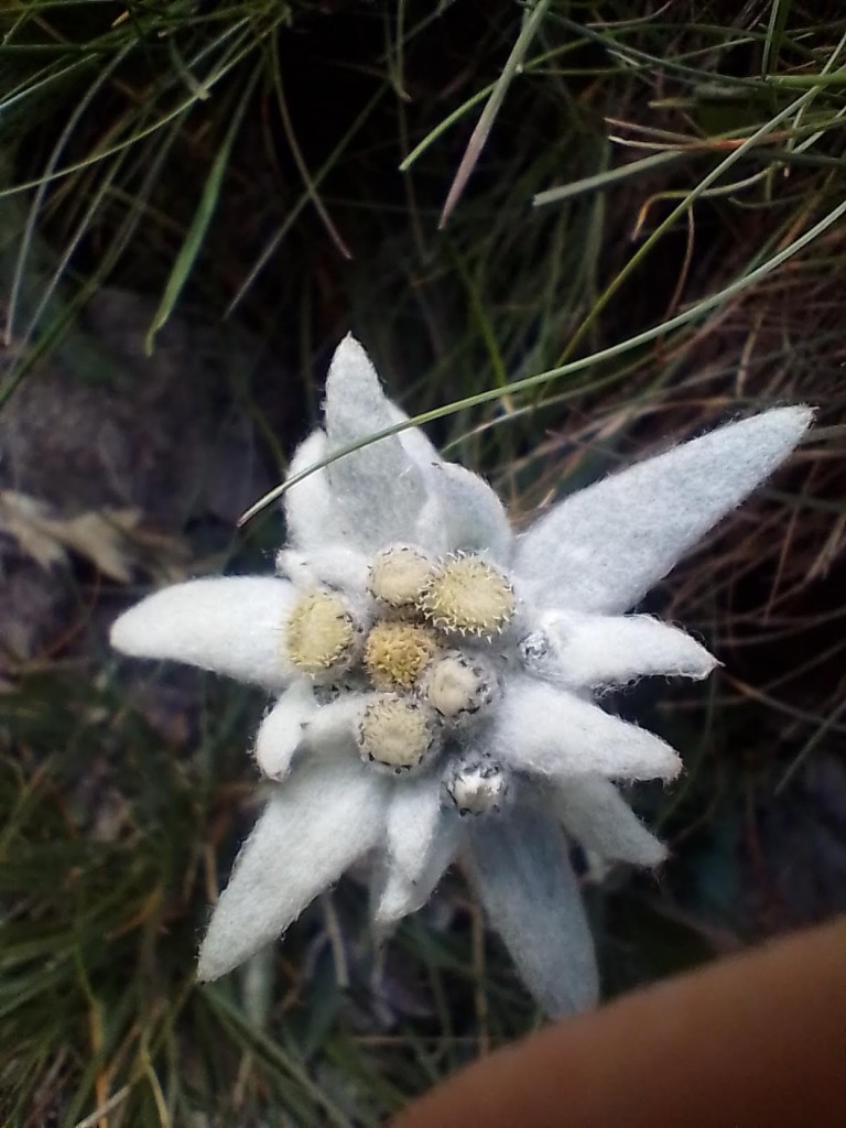 Se possibile, dopo la svolta a destra al bivio con il sentiero 13C, la nostra salita si fa ancora più ripida ma proprio nel punto più faticoso e complesso, la nostra fatica viene ripagata dalla più insospettabile delle sorprese: una magnifica stella alpina. Già che mi sono fermato a fotografare, ne approfitto per tirare il fiato e dare un’occhiata a ciò che ci attende ancora davanti. Non mi piace quello che vedo e posso solo augurarmi che non sia peggio di quanto abbiamo già percorso. In effetti non è così brutto, i ripidi tornanti sono più facili del previsto e dopo un ultimissimo tratto, siamo sopra.