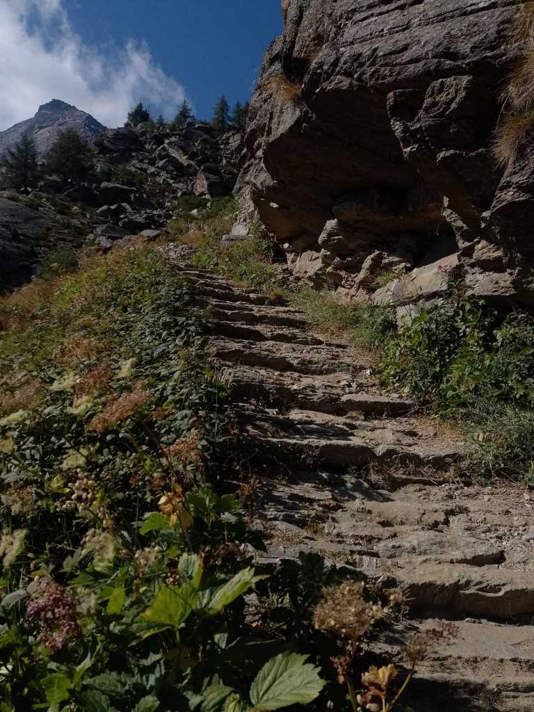 Parcheggiato nel grande piazzale, dal retro dell’hotel Gran Paradiso abbiamo imboccato il sentiero 3, che sale subito all’interno di un fitto bosco, sulla sponda destra della Dora del Nivolet, alla quale ci avviciniamo sempre più via via che saliamo.
