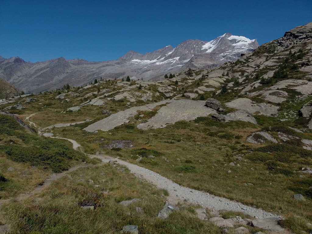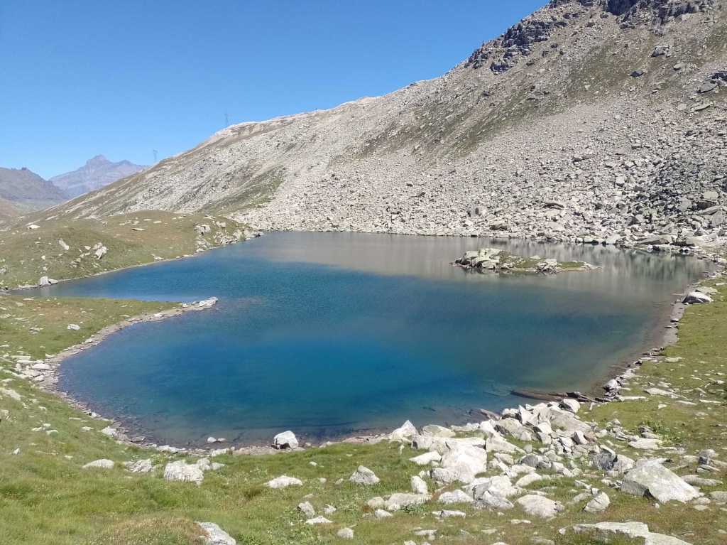 Siamo saliti ancora e ci siamo spinti oltre i laghi per dare una sbirciata sul versante opposto, fino a vedere la maestosa cima della Grande Aguille Rousse (3482 mt) e tutta la cresta di cime al di là della quale c’è la Francia. Purtroppo è tempo di tornare; il sentiero è lo stesso dell’andata, e da quel punto ci aspettano altri 12 km da percorrere… e quella discesa.