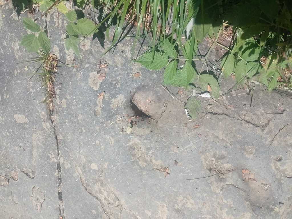 Osservando con attenzione, all’uscita dal primo tratto di bosco, si incontrano proprio sue sentiero due segni lasciati dall’uomo in epoche remote e difficilmente databili. Si tratta di un foro circolare di apprezzabile profondità e dimensione. La sua forma ricorda molto quella dei fori praticati per alloggiare i “piri” ovvero pali di legno utilizzati per avvolgere le corde frenanti durante la discesa dei blocchi di pietra, lungo le cosiddette vie di lizza; ma lì questa funzione parrebbe ingiustificata. Sullo stesso masso, si trova un secondo segno circolare, assai meno profondo e di minore diametro, forse una piccola coppellina.