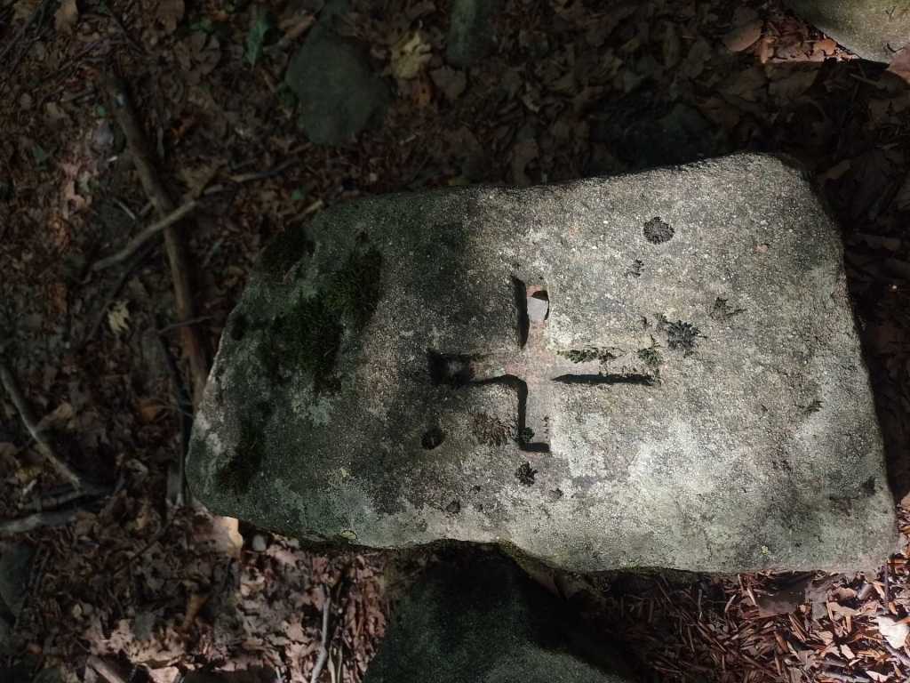 Nel successivo tratto di bosco, sul lato a valle del sentiero, è possibile osservare un altro segno rupestre, ovvero una crocetta incisa profondamente su un sasso.